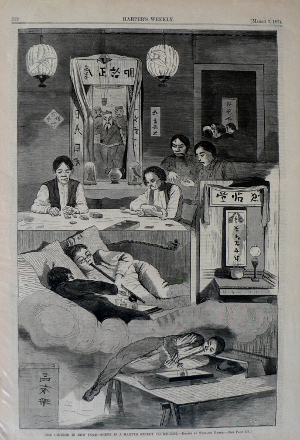 after Winslow Homer. (Scene of Chinese immigrants in NYC) New York: Harper’s Weekly, 1874