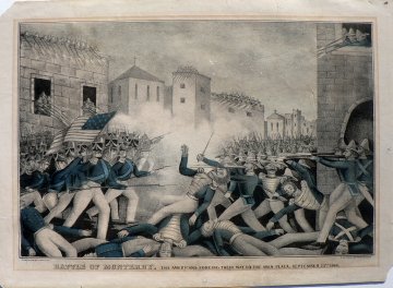 A war initiated by the United States with Mexico occurred between the spring of 1846 and the fall of 1847. The highly controversial war ended in victory for the United States. The 1848 Treaty of Guadalupe Hidalgo forced the Mexican cession of the territories of Alta California and Santa Fe de Nuevo Mexico to the US in exchange for $15 million and recognized Texas as independent. Lithographic publishers produced prints showing the course of the war for a public eager for the news.