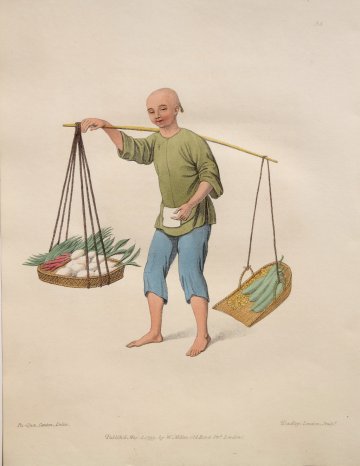 (Boy with Vegetables) After Pu Qua. Costume of China. London, [1799-1804] – 1821. Framed