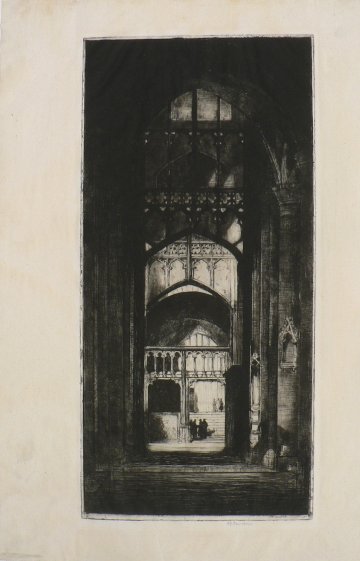 A superb impression of DY Cameron at his best, this etching depicts the north aisle of the cathedral looking to the east.