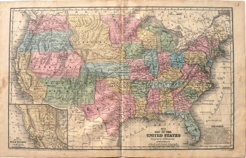 “Map of the United States…” with inset of “The Gold Region of California.” Philadelphia: S.A. Mitchell, 1854