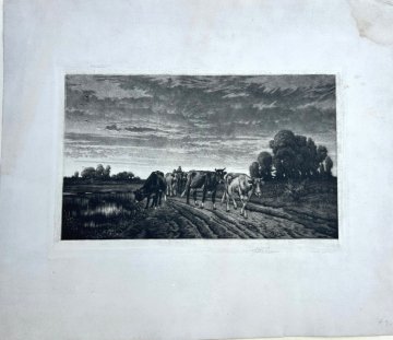 Peter Moran, Country Road with Cattle. Mezzotinted engraving