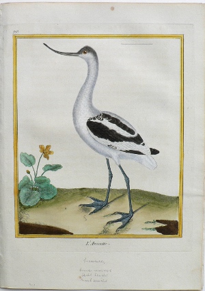 Francois Martinet was one of the foremost bird artists of 18th century France. He collaborated with Count Georges-Louis Leclerc du Buffon to produce these charming, brightly colored engravings of exotic and common birds. The prints are highly valued by interior designers as well as collectors. In Fine Bird Books, Sacheverell Sitwell notes that Histoire Naturelle des Oiseaux… was “certainly the most ambitious and comprehensive book which had appeared at the time of its publication, and ranks still as one of the most important of all bird books from the collector’s point of view.” (Sitwell, p. 64) Martinet surrounded his images with a distinctive yellow border that some believe to be the predecessor to French matting.