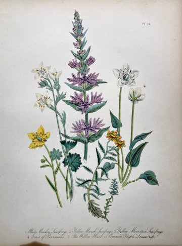 Plate 24 “White Meadow Saxifrage, Yellow Marsh Saxifrage, Yellow Mountain Saxifrage, Grass of Parnassus…