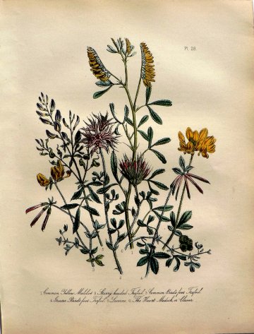 Plate 28. Jane W. Loudon. (Trefoil, Meliot) British Wild Flowers. London: William Smith, 1849.