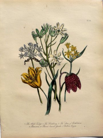 PL 59. 1. The Wild Tulip 2. The Fritillary 3. The Star of Bethlehem 4. Ramsons or Broadleaved Garlic 5. Yellow Gagea