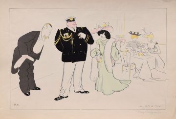 A charming and talented man, Goursat was working in Paris at the time of the opening of the Universal Exposition in 1900 where the Art Nouveau style in architecture and decoration was hugely popular. His inspiration came from observing French high society enjoying life at restaurants, at the opera and at the races. Goursat actually chose horse racing as his way of entry to French “Beau Monde.” Just three months after his arrival to Paris he self published an album titled ?Le Turf? with caricatures of many prominent Parisians. The success of this album made him famous overnight.