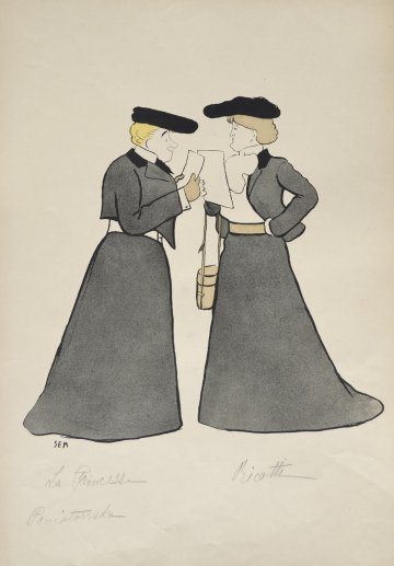Georges Goursat (1863 – 1934) was a French caricaturist known as “Sem.” In 1888 Goursat self published three albums of caricatures, signing them “SEM.” It is thought that this was in tribute to the early 19th century French caricaturist and lithographer Charles Amédée de Noé, who signed his caricatures for the periodical “Le Monde Illustré”as “Cham.”