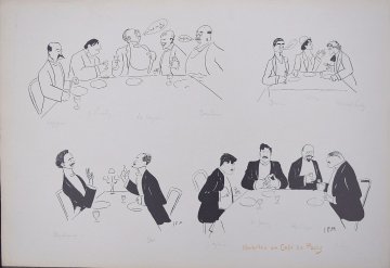 A charming and talented man, Goursat was working in Paris at the time of the opening of the Universal Exposition in 1900 where the Art Nouveau style in architecture and decoration was hugely popular. His inspiration came from observing French high society enjoying life at restaurants, at the opera and at the races. Goursat actually chose horse racing as his way of entry to French “Beau Monde.” Just three months after his arrival to Paris he published an album titled ?Le Turf? with caricatures of many prominent Parisians. The success of this album made him famous overnight.