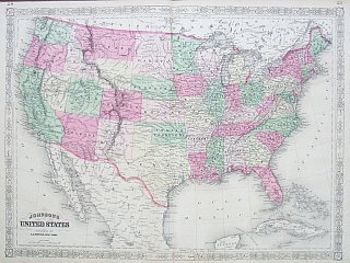 Large detailed map of the United States of America printed just three years into the American Civil War. Published by Alvin J. Johnson for his