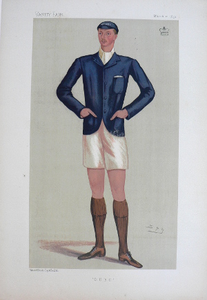 was a popular weekly magazine of social, literary and political content that was published in London between 1868 and 1914. It contained articles on political, economic and social topics though as time passed political reports were de-emphasized in favor of society news and gossip. The full page color caricatures of famous men and women of the day were popular at the time and continue to be so today. The two most famous artists who worked for Vanity Fair were “Ape” (Carlo Pellegrini) and “Spy” (Leslie Ward), but many other artists provided images for this long running series of delightful caricatures. This image was created by Spy.