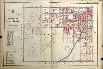 Another great map of the borough of West Chester, this map shows some important historic buildings and properties of West Chester. The top left corner shows West Chester Golf and Country Club, still active today. Along Gay Street is St. Agnes Church. The Chester County Court house is located in the top right-hand corner. Although the newly constructed courthouse is where legal matters now take place, this historic courthouse is where you’ll find many students and businessmen and women eating their lunches, or newlyweds taking photographs! This map would be a great piece for someone who currently lives in the borough or enjoys taking part in the activities of this up and coming historic borough.