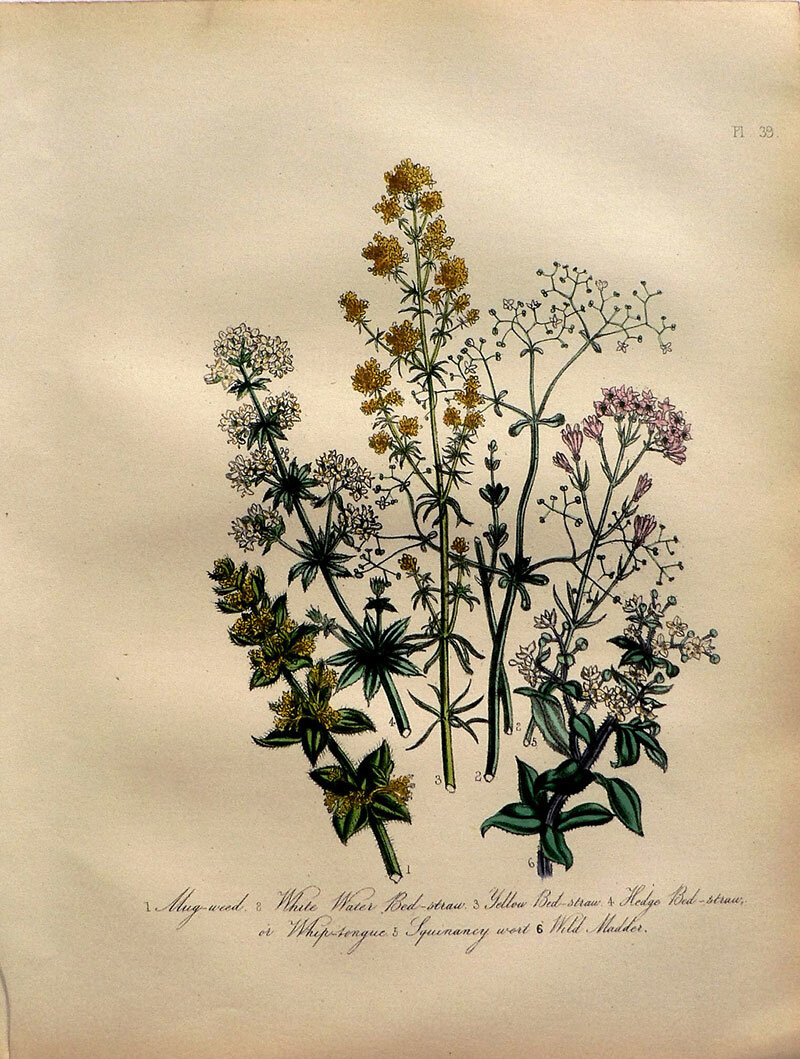 Plate 39. Jane W, Loudon. (Bed-straw, Madder, Whip-tongue) British Wild Flowers. London: William Smith, 1849.